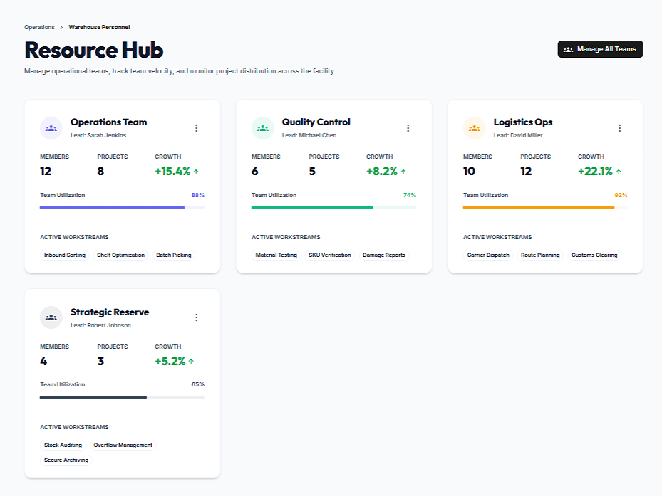 Our Model centralizes warehouse management across multiple locations—Operations, Quality Control, Logistics, and Strategic Reserve. Each warehouse tracks capacity, QC zones, and stock at rack-level precision.Inbound processes include purchase orders, receiving sessions, and QC gates, ensuring non-compliant materials are held before approval. Once cleared, the system suggests optimal storage locations.Outbound workflows handle allocation, picking, and shipment, with bundle-level tracking that preserves full traceability—even during cutting or partial usage.