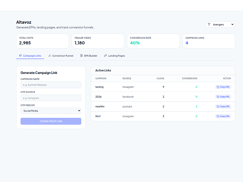 - Activation: Altavoz EPK-to-landing-page builder + UTM funnel attribution + referral code engine